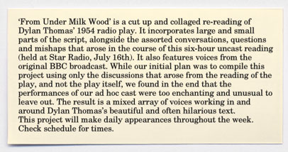 Marcia Farquhar with J. Maizlish: "From Under Milk Wood", a radio play in 8 episodes, produced for STAR Radio, Cardiff, Wales, July-October 2005.