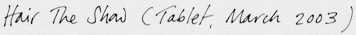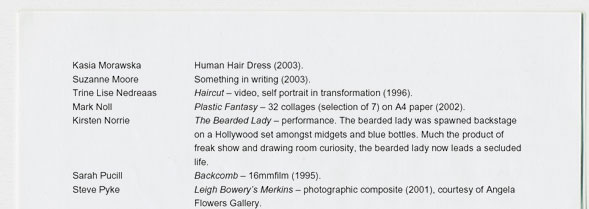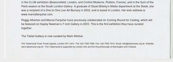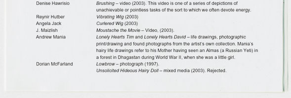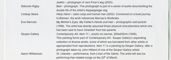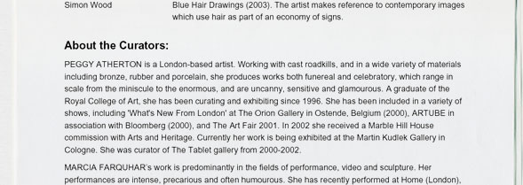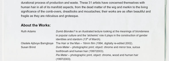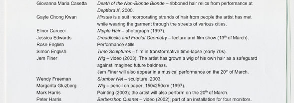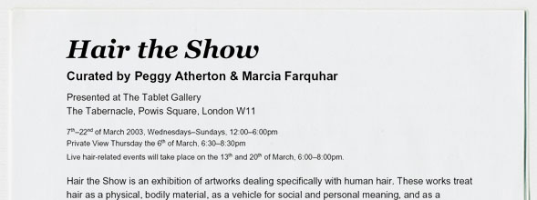 Marcia Farquhar & Peggy Atherton present: Hair the Show, 7-22 March 2003, Tablet Gallery, The Tabernacle,