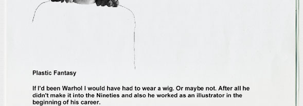 Leigh Bowery's merkens as snapped by Steve Pyke, Margarita Gluzberg's fine line drawings of empty hairdos, Simon